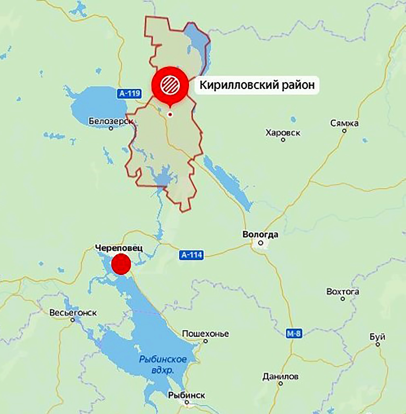 Рисунок 1 – Город Череповец и Кирилловский район Вологодской области