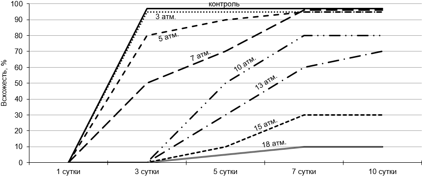 Рисунок 1 – Динамика прорастания семян M. virgata в условиях осмотического стресса
