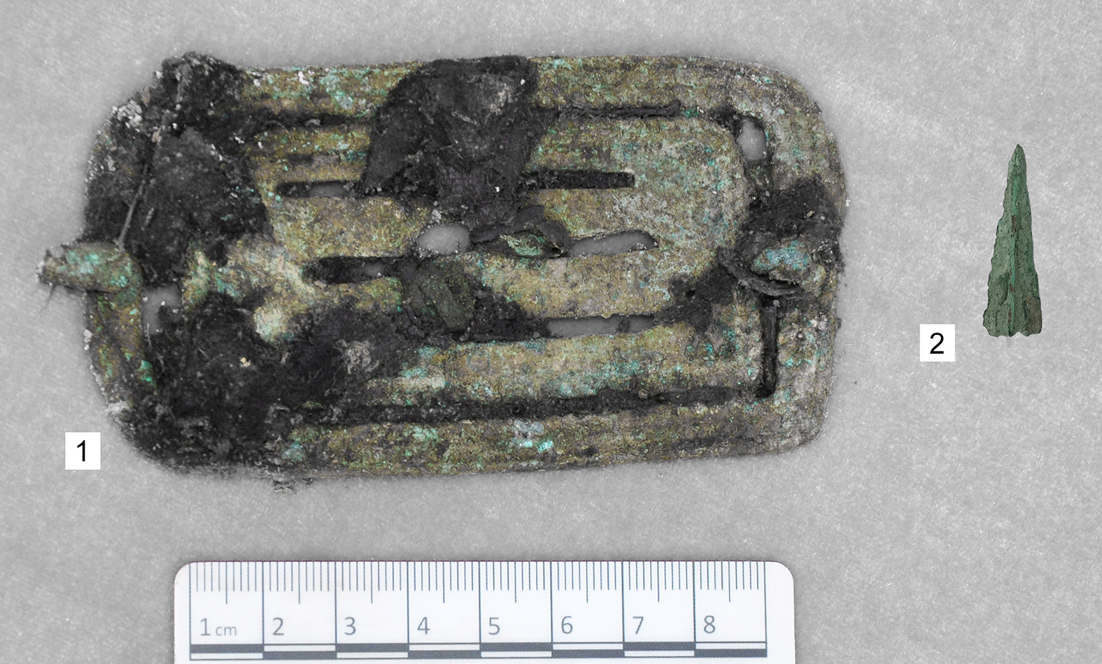 Также в ходе исследования археологических материалов Ново-Уфимского могильника на базе Института археологии Университетского колледжа Лондона были проведены анализы двух предположительно бронзовых предметов из погребения 4: металлической пряжки и металлического наконечника стрелы (рис. 2: 2).