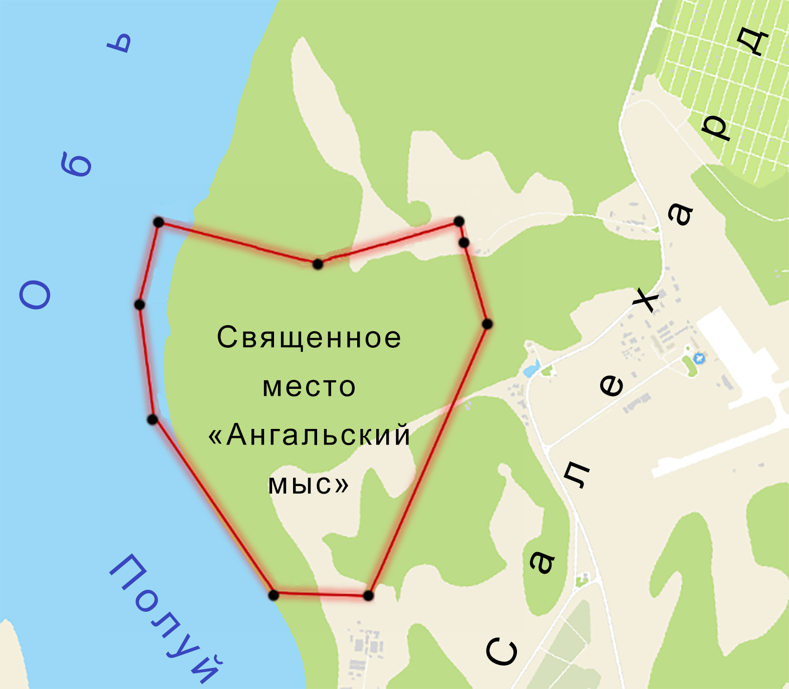Священное место «Ангальский мыс» зарегистрировано в Едином государственном реестре объектов культурного наследия народов Российской Федерации под номером 831330006330005 и служит объектом культурного наследия регионального значения [20; 21]. Первоначально это место имело сакральное значение для народа ханты (XVI–XVII вв.) (пер. с ханты – «Лонгхавыт нёл»), связывалось им с местообитанием старшего сына верховного бога Торума – Ас Ики (пер. с ханты – «Обской Старик»), позже оно стало почитаться ненцами и другими народами, населяющими данную территорию. Сакральное и историко-культурное значение этого места раскрыто в специальной литературе [9, с. 77–79; 10, с. 157–158; 11, с. 315–316; 13; 17].