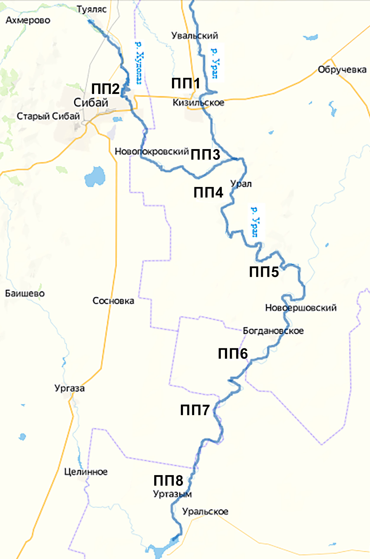 В бассейне р. Урал расположены города (Верхнеуральск, Магнитогорск в Челябинской и Орск, Новотроицк, Оренбург в Оренбургской областях, г. Сибай – в Республике Башкортостан), где функционируют крупные промышленные предприятия. Горнорудные и металлургические комбинаты и другие промышленные объекты загрязняют реки сточными водами, содержащими различные токсиканты, которые из воды по трофическим цепям поступают в живые организмы и аккумулируются в них [4]. Деятельность горнорудных предприятий на исследуемой территории негативным образом отражается на состоянии окружающей среды [5] и, в целом, на здоровье населения [6; 7].