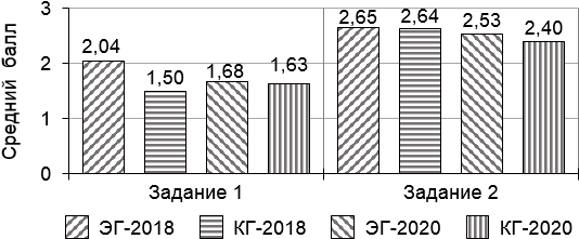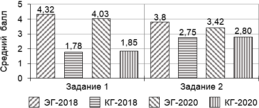 Содержание заданий может изменяться, в частности, для достижения поставленной цели можно использовать и другие разделы высшей математики (векторная алгебра, кривые второго порядка и т.п.), структура заданий, системы вопросов к ним остаются неизменными. Таким образом, использование приведенных заданий является реализацией дидактического условия формирования компетенции самоорганизации и самообразования. Для оценки результативности разработанных заданий был проведен эксперимент в Самарском национальном исследовательском университете имени академика С.П. Королёва в группах обучающихся по направлению 23.03.01 Технология транспортных процессов, профиль «Организация перевозок и управление на воздушном транспорте» и «Комплексная безопасность на транспорте». По сути, эксперимент проводился 2 раза для повышения надежности результатов исследования – в первый экспериментальный год (набор 2018) были выбраны следующие группы обучающихся: студенты контрольной группы (КГ), для которых читался традиционный курс высшей математики (36 чел.) и студенты экспериментальной группы (ЭГ) – они были выбраны среди обучающихся, для которых были разработаны специальные задания по высшей математике. Критерием отбора было посещение факультатива «Основы научной организации труда обучающегося» (23 чел.). Через год эксперимент был повторен. Для нового набора (2020 года) отбор обучающихся в экспериментальную (19 чел.) и контрольную (32 чел.) осуществлялся по тем же критериям.
