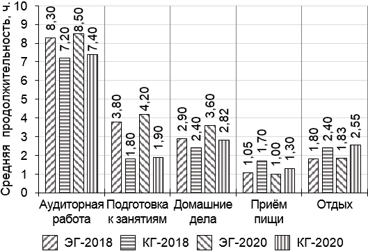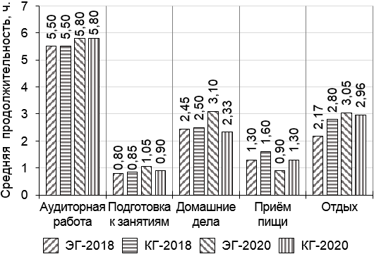 Рисунок 3 – Распределение времени обучающихся по видам деятельности