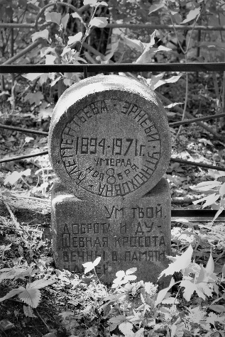 В-третьих, важным и показательным способом визуализации памятника становятся надписи с личными данными об усопшем. На старинных надгробиях эти данные, как известно, отсутствуют вообще. Лишь изредка на них обозначались фамилия, имя, отчество покойника, год рождения и год смерти. В настоящее время эти надписи располагаются там, где их не должно быть в принципе, например, внутри пространства головы памятника. Надписи располагаются либо горизонтально, либо по периметру окружности головы памятника (рис. 8).