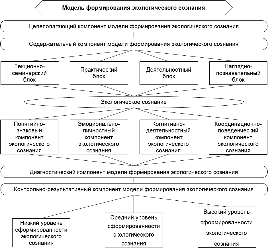 Современная педагогическая наука обладает достаточным теоретическим, методологическим и технологическим потенциалом, необходимым для решения значительного количества проблем, диктуемых общественной и политической обстановкой в стране. Разработка моделей формирования экологического сознания студентов позволяет создать доступный и эффективный способ формирования и коррекции уже сформированного экологического сознания в контексте педагогического процесса вуза.
