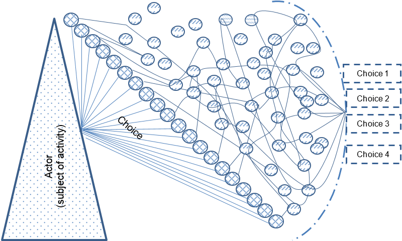 As a result of the work undertaken, we faced a rather difficult problem in the ability and desire to make a choice. While articulating their demands and interests, setting the rating of competencies achievement, the student is faced with the need to make decisions on this choice, which significantly complicates it. Fig. 1 shows the synergetic essence of the choice process, which highlights a complex scheme for constructing and designing an educational programme, taking into account the individual choice of courses and modules by students.