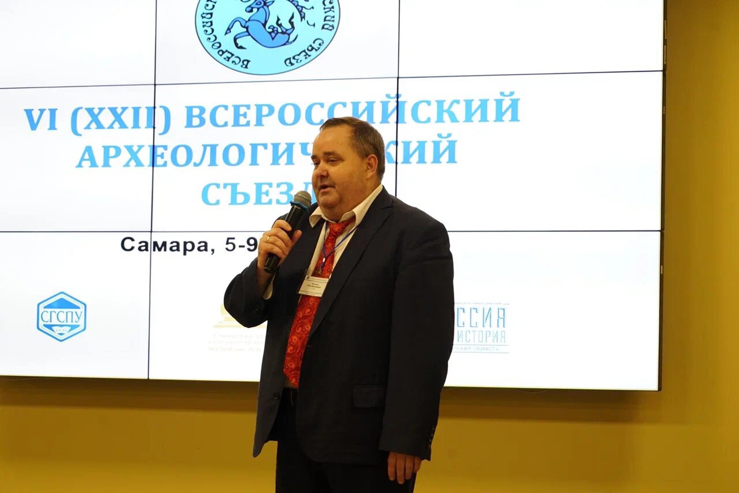 Рисунок 4 – О.Д. Мочалов выступает на VI (XXII) всероссийском археологическом съезде с приветственным словом (05.06.2022)