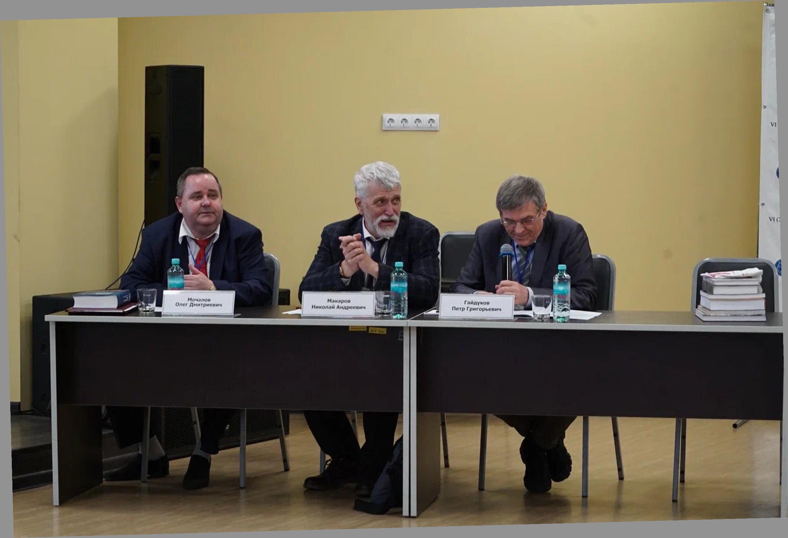 Рисунок 5 – Президиум VI (XXII) всероссийского археологического съезда. Слева направо: О.Д. Мочалов; вице-президент РАН, академик РАН, директор Института археологии РАН Н.А. Макаров; член-корреспондент РАН, заместитель директора Института археологии РАН П.Г. Гайдуков