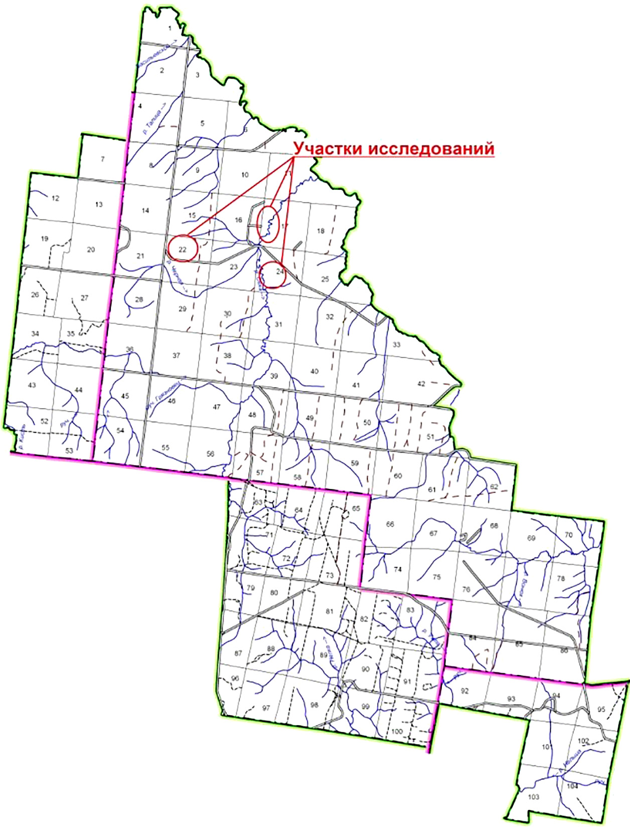 Рисунок 1 – Карта-схема Государственного природного заповедника «Кологривский лес» (Кологривский участок) с нанесением участков, взятых для исследования грызунов [27]