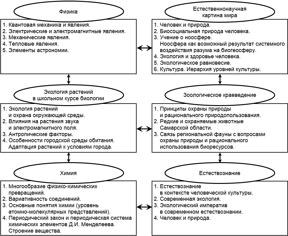 Представленный ниже рисунок 1 отражает интегративные/холистичные связи отдельных учебных дисциплин естественнонаучного цикла и преемственность их изложения.