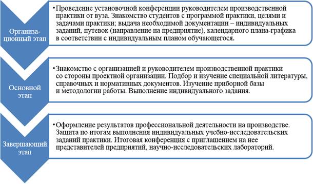 Рисунок 2 – Характеристика содержания этапов содержания производственной практики