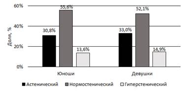 Рисунок 3 – Гендерное распределение по типу телосложения