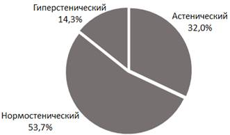 На рис. 4 представлено распределение типов телосложения в генеральной выборке (n=175).