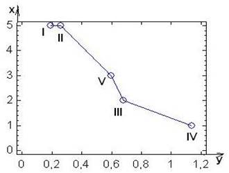 Рисунок 2 – График зависимости насыщенности раритетными видами от степени антропогенной нагрузки по элементарным подрайонам. Ось X – насыщенность раритетными видам. Ось Y – величина антропогенной нагрузки (баллы)