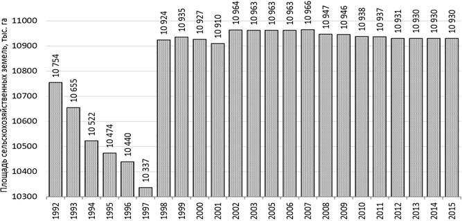 Рисунок 1 – Изменение площади сельскохозяйственных земель [6]