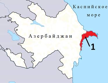 Рисунок 1 – Карта-схема Азербайджана. 1 –исследованная территория