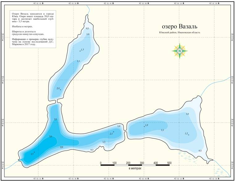 Рисунок 1 – Батиметрическая схема озера Вазаль
