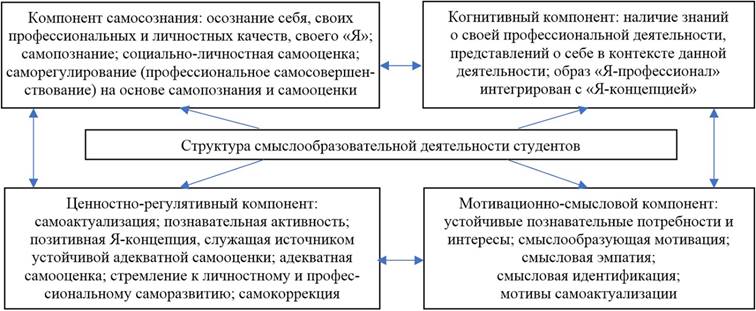Рассматривая развитие профессионального самоопределения студента вуза на основе смыслообразовательной деятельности, в исследовании разработана и актуализирована её структура (рис. 1).