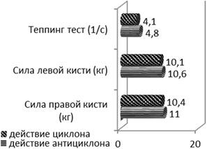 Завершая анализ результатов психофизиологических тестов, можно отметить достаточно неблагоприятное влияние циклонических областей пониженного давления на функциональный статус ребёнка.