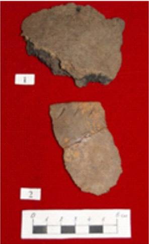 Таким образом, при составлении формовочных масс, как правило, использовался шамот и органические примеси. Повторение этого же рецепта в шамоте свидетельствует об устойчивости данной традиции и внешней культурной однородности населения. Различия на уровне крупности и концентрации шамота, использование навоза в разных его состояниях (естественно влажное и выжимка) указывают, вероятно, на конкретные семейные группы изготовителей керамики. Множественность рецептов формовочных масс и источников сырья свидетельствует скорее всего о множественности производителей посуды, связанных родственными узами [31, с. 40].