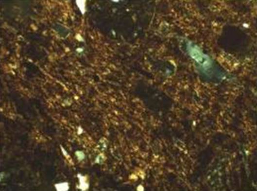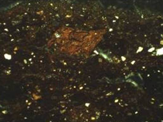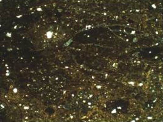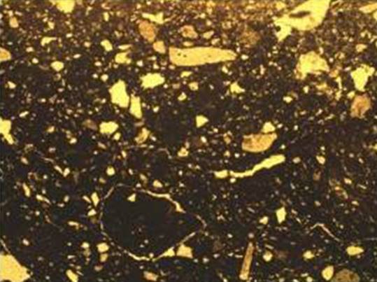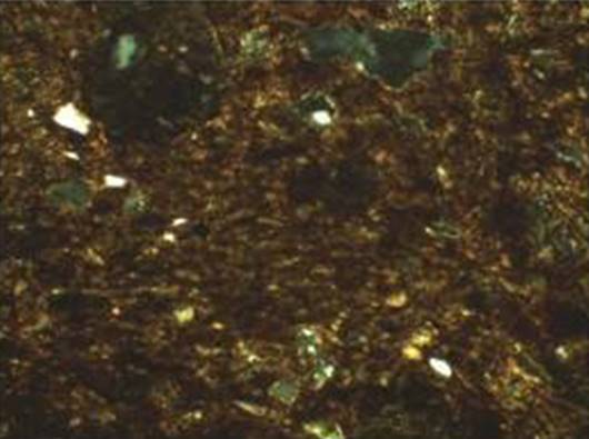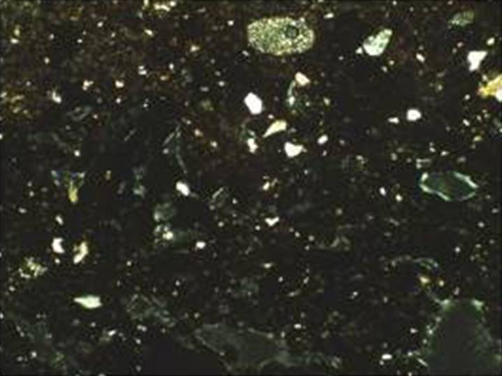 Рисунок 22 – Микрофотографии тонких срезов (шлифов) керамического материала. Снимок сделан в поляризационном пересечении. Ширина изображения: 1,45 мм. Образец 6 – поляризационное пересечение