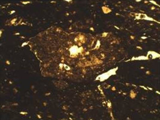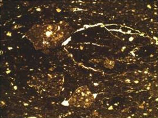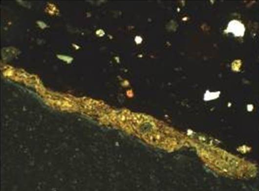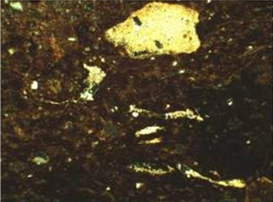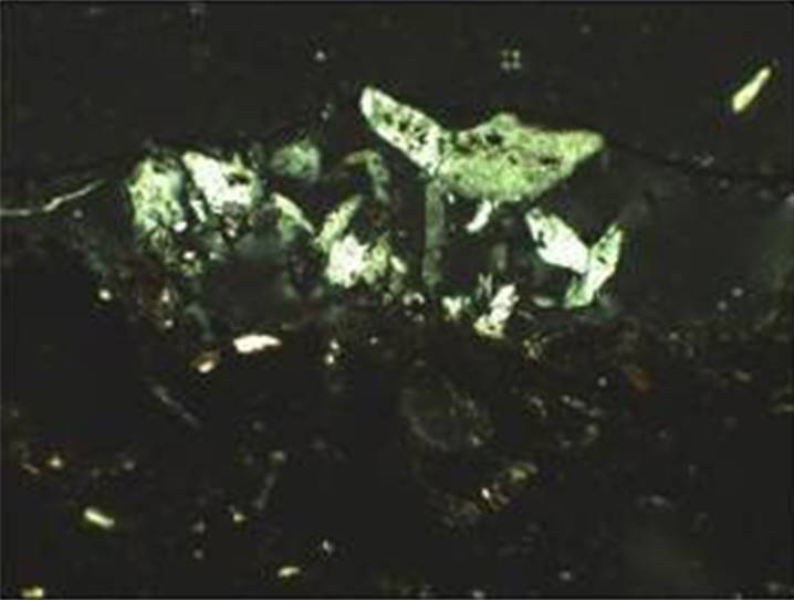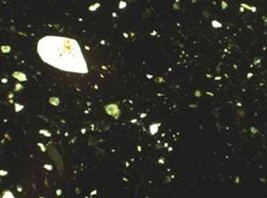 Рисунок 16 – Микрофотографии тонких срезов (шлифов) керамического материала. Снимок сделан в поляризационном пересечении. Ширина изображения: 1,45 мм. Образец 4 – плоское поляризованное освещение