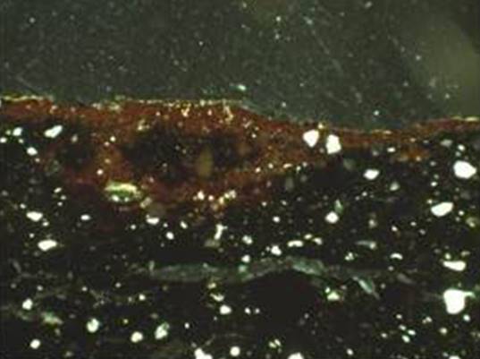 Рисунок 21 – Микрофотографии тонких срезов (шлифов) керамического материала. Снимок сделан в поляризационном пересечении. Ширина изображения: 2,9 мм. Образец 6 – поляризационное пересечение