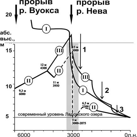 Рисунок 3 – Триада катаклизмов в Онежско-Ладожской водной системе во второй половине голоцене