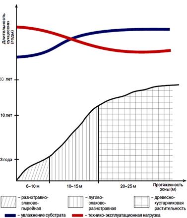 Рисунок 1 – Сукцессия растительных ассоциаций в условиях полосы отвода железных дорог