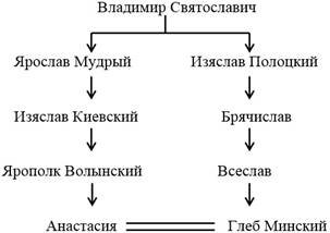 Рисунок 1 – Схема родства Анастасии Ярополковны и Глеба Всеславича