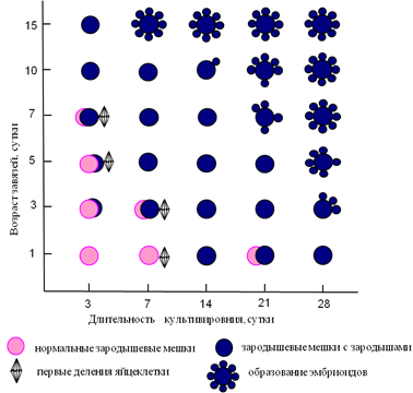 Рисунок 1 – Сроки возникновения эмбриональных структур в завязях кукурузы линии АТ-1 in vitro