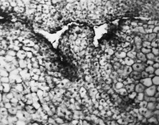 В ткани разросшегося зародыша было отмечено также заложение почек с элементами проводящей системы (рис. 3), но регенерации путём геммогенеза при этом не наблюдалось.