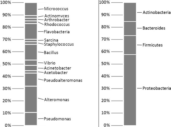 - Среди культивируемых бактерий доминировали бактерии филума Proteobacteria, а также были выделены бактерии филумов Firmicutes и Actinobacteria, Bacteroidetes.