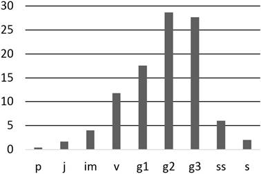 Рисунок 1 – Базовый онтогенетический спектр популяций A. salsoloides в Самарской области (%)
