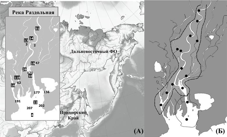 Эстуарии, расположенные в зоне контакта морских и пресных вод, характеризуются выраженным градиентом солености. Соленостный режим является одним из ключевых факторов, определяющих все важнейшие характеристики эстуарных сообществ [1–3]. Эстуарная зона реки Раздольной является районом наиболее активной хозяйственной деятельности в северо-западной части побережья Японского моря (залив Петра Великого) и подвергается антропогенному воздействию [4].