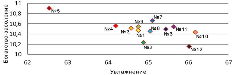 если увеличивается влажность почвы, то уменьшается кислотность и богатство.