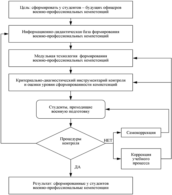 Рисунок 1 – Алгоритмическая модель системы формирования у студентов военно-профессиональных компетенций