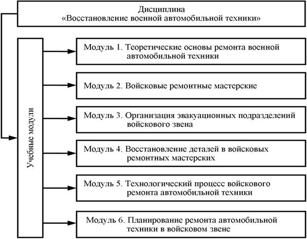 Рисунок 2 – Состав и содержание учебных модулей дисциплины «Восстановление военной автомобильной техники»
