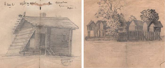 Рисунок 6 – С. Федоровское Чухломского у. Костромской губ. 1925 г. Рис. А.А. Байберт. Карандаш. [22, л. 37, 40]