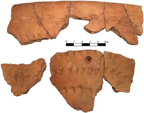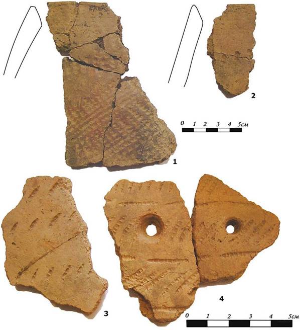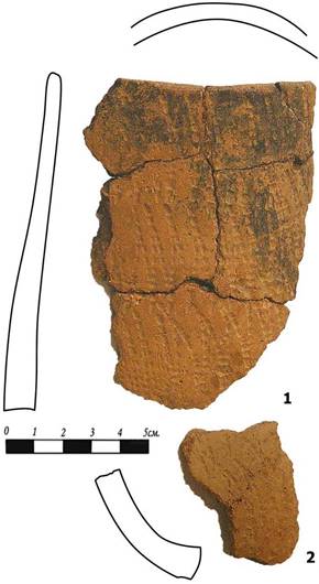 Рисунок 1 – Керамика камской культуры. 1–2 – шагающая гребенка