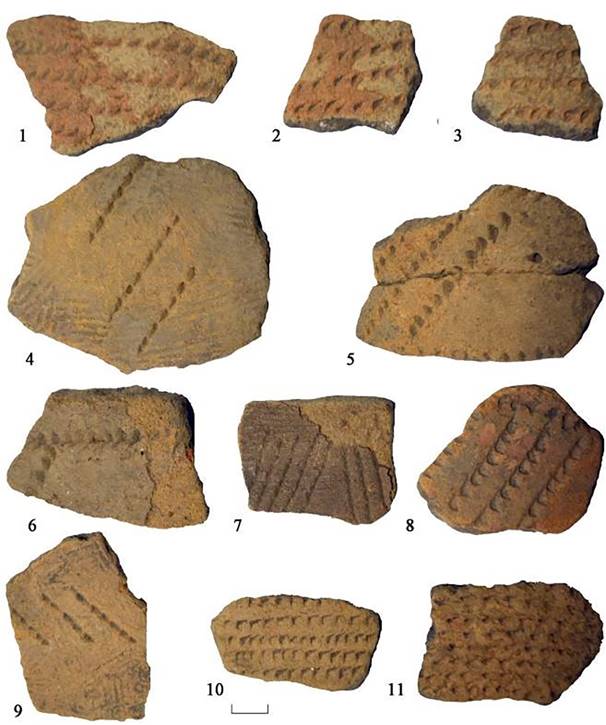 Рисунок 5 – Стоянка Ярлуковская Протока (пункт 222). 1–11 – керамика среднедонской культуры