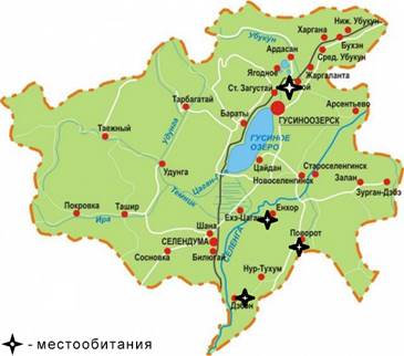 Рисунок 2 – Схема найденных местообитаний в Селенгинском районе