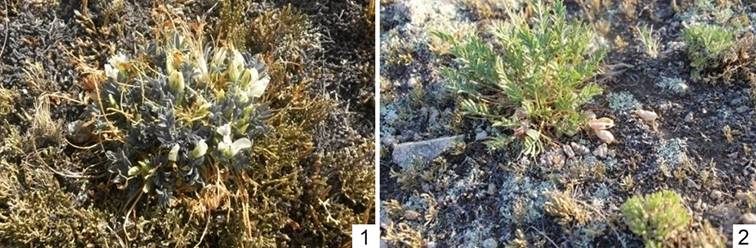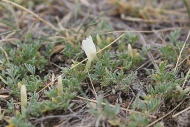 Для цветения со второй декады мая астрагал молочно-белый обладает определенными биоморфологическими адаптациями. Astragalus galactites практически цветет «из земли», так он по максимуму использует раннее тепло в период вегетации, ведь почвы открытых склонов весной прогреваются быстрее, чем воздух. «Прижатая» к земле форма – это адаптация в ответ на экстремальные условия. Розеточная форма растения позволяет использовать то, что ближе к земле воздух теплее. На начало фазы цветения цветки прижаты к субстрату, листья гораздо меньше по размеру, чем в период плодоношения (рис. 4). Адаптация на всех этих уровнях должна противостоять перегреву под воздействием длительного солнечного излучения и нагретого субстрата при недостатке осадков, сохранять тепло при его недостатке при резком падении температур в ночное время до заморозков.