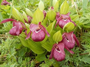 Cypripedium macranthon Sw. – башмачок крупноцветковый – травянистое растение до 45 см высотой с укороченным толстым корневищем. Основания побегов с буроватыми влагалищами. Стебель прямой, с 3–5 очередными овальными листьями. Цветки (1, реже 2) розовые, с листовидным эллиптическим прицветником до 10 см длиной. Листочки околоцветника и губа нередко с более темными жилками. Губа до 7 см длиной, сильно вздутая (рис. 1). Размножение семенное и вегетативное. Вид с довольно обширным евроазиатским ареалом [3, с. 304; 4, с. 13–18]. В Камчатском крае встречается в южной и центральных частях п-ва Камчатка и на о-ве Беринга [5, с. 337]. В региональную Красную книгу C. macranthon включен как сокращающийся в численности вид (категория 2) [6, с. 44]. Внесен в Красные книги или охраняется на большей части субъектов РФ, где он встречается. Включен в Приложение II Международной конвенции СИТЕС [2].