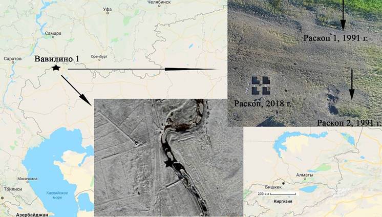Существующее разночтение по поводу названия Вавилино 1 и Вавилово 2 объясняется тем, что первооткрыватель памятника, Н.М. Малов в 1986 году обозначил его как Вавилово 2 [5, с. 486], локализовав его в 1 км к югу от с. Вавилово на первой надпойменной террасе правого берега р. Деркул [6, с. 4–5; 7, с. 86]. Проводившая в 1991 году раскопки на этом же памятнике Н.Л. Моргунова назвала его как Вавилино 1 [8, с. 1–2], в соответствии с административным наименованием близлежащего населенного пункта Вавилино (с 2010 года – пос. Бастау Таскалинского района Западно-Казахстанской области). Поэтому мы также приняли данное наименование памятника как Вавилино 1 [9, с. 96].