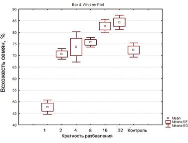 Результаты статистической обработки данных по всхожести семян были представлены в графическом виде при помощи специализированной компьютерной программы (рис. 1).