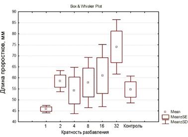 Анализ данных по длине проростков кресс-салата был представлен на следующей диаграмме (рис. 2).