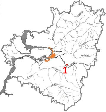 Рисунок 1 – Место расположения (1) могильника Красносамарский IV