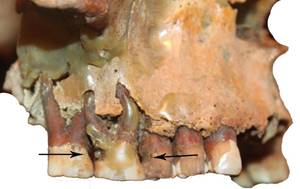 Рисунок 2 – Следы интерпроксимальных желобков на зубах верхней челюсти мужчины 40–45 лет из погребения 14 кургана 3 могильника Красносамарский IV