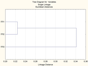 По показателям среды, оцененным методом фитоиндикации с использованием шкал Элленберга [6, с. 35–179], третья пробная площадь (ПП3) – дубо-клено-липняк копытнево-снытевый – значительно отличается от остальных (рис. 2). Именно в этой ассоциации нами было отловлено лишь 15 экземпляров Myodes glareolus. Это объясняется более высокой пластичностью рыжей полевки, чем мышей, к факторам среды. ПП 3 характеризуется наибольшими показателями N (богатство почвы азотом) и наименьшим показателем освещенности. Видимо, хотя особи Myodes glareolus предпочитают средние значения освещенности, они способны успешно проживать и в более затененных местообитаниях.